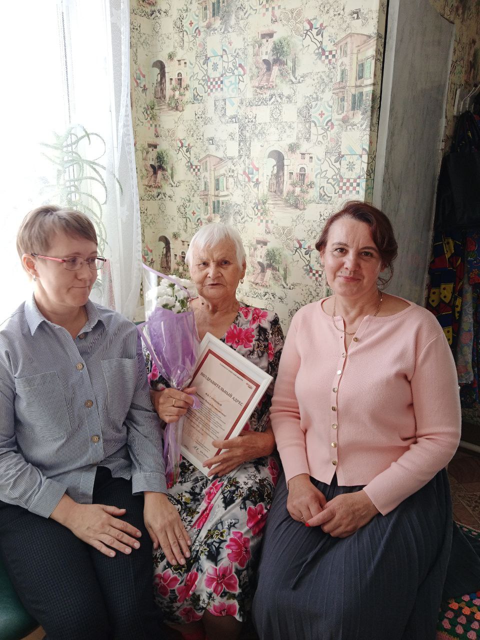 Третьего сентября 2025 года представители « ОГБУ УСЗСОН по Аларскому району» в лице заместителя директора Павловой С.Н и начальника отдела соцциального обслуживания на дому Мироновой Л.В выехали к Гариповой Фанузе Кутлиахметовне, чтобы от лица губернатора Иркутской области Игоря Ивановича Кобзева и от лица учреждения поздравить ее с 85-летним юбилеем. Фануза Кутлиахметовна прожила достойную жизнь, являясь ребенком войны и ветераном труда.