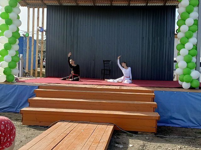 Танцевальные композиции сменялись песнями в исполнении детей и взрослых коллективов. Хореографические коллективы «Наран», «Непоседы», школа танца Татьяны Убашеевой – «Хутэл», солисты Диана Миронова и Есения Волошина, вокальные коллективы «Возрождение» и «Сударушки» – подарили гостям массу эмоций. В перерывах проходила интеллектуальная викторина, со сладкими призами за правильные ответы, где ростовые куклы, Мишка с Карлсоном, выбирали кто первый ответил.