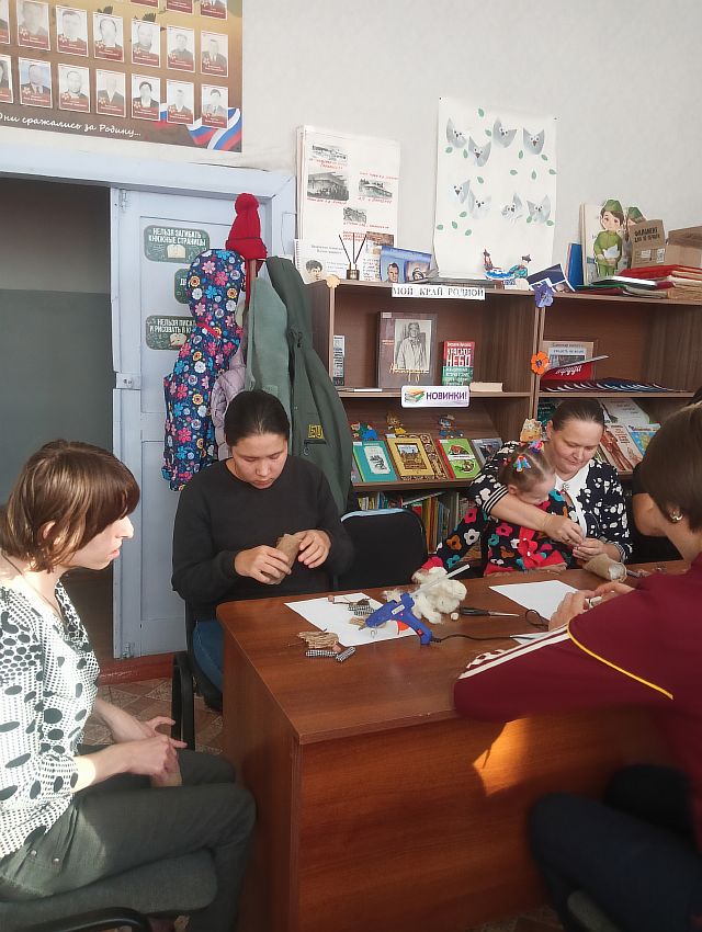 В преддверии Дня семьи, воспитывающей ребенка-инвалида, в Иванической библиотеке состоялся теплый и душевный мастер-класс по изготовлению оберега – “Домовёнок – хранителя”. Организатором мероприятия выступила Мелещенко Татьяна Николаевна, специалист по социальной работе ОГБУ «УСЗСОН по Аларскому району» и руководитель клуба “Открытые сердца”, в сотрудничестве с Иваническим библиотекарем Абашевой Е.М.