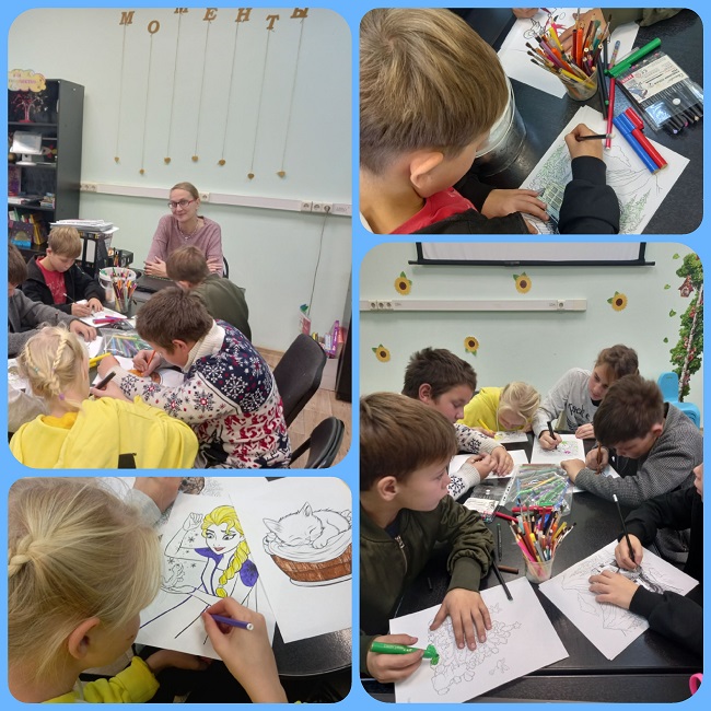 Каждый ребенок выполнил яркую и оригинальную раскраску по своему вкусу и видению сюжета.