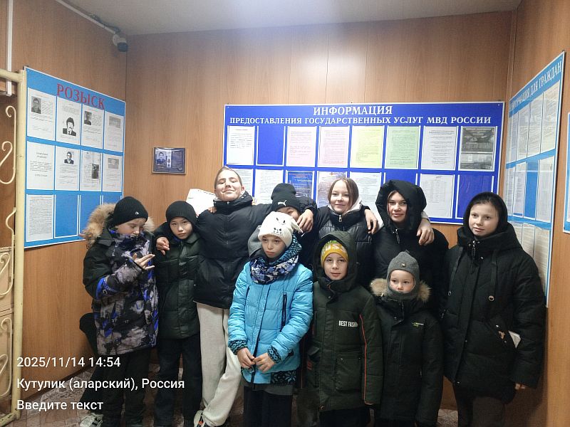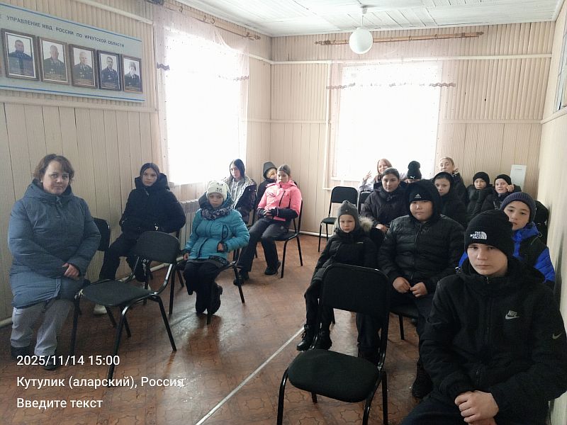 В рамках межведомственного взаимодействия ОГБУ «УСЗСОН по Аларскому району» структурным подразделением СМФЦ 14.11.2025г. прошла экскурсия в ОП №2 МВД «Черемховский» дислокации п. Кутулик. Организация прошла совместными усилиями специалистом по социальной работе Михальчук М.А. и социальным педагогом МБОУ Кутуликской СОШ Баторовой В.Д.