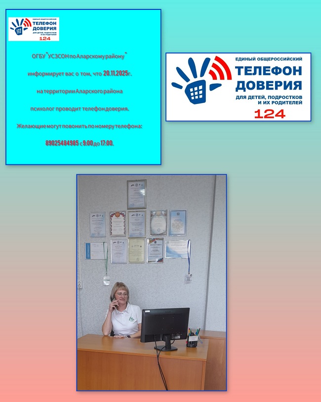 20 ноября 2025, в рамках правовой недели психолог ОГБУ «УСЗСОН по Аларскому району», структурного подразделении СМФЦ, организовала консультационную работу для жителей Аларского района «Телефон доверия». Специалист была готова ответить на вопросы детей и подростков, оказать экстренную психологическую помощь. По «Телефону доверия» могли позвонить родители по проблемам взаимоотношений в семье, люди пожилого возраста, участники специальной ВО и их близкие родственники.